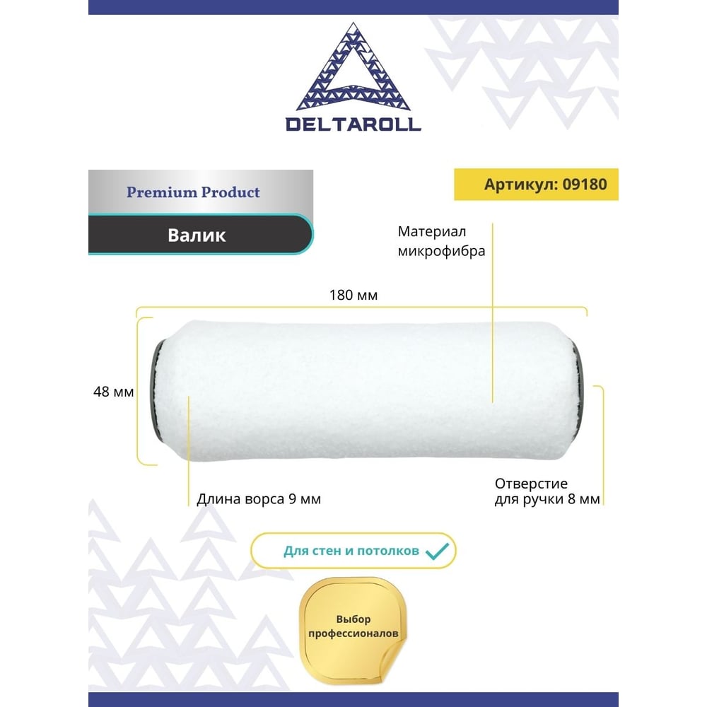 Валик DeltaRoll миди, белый микрофибра, премиум, ворс 9 мм, 180x48 мм, R09180