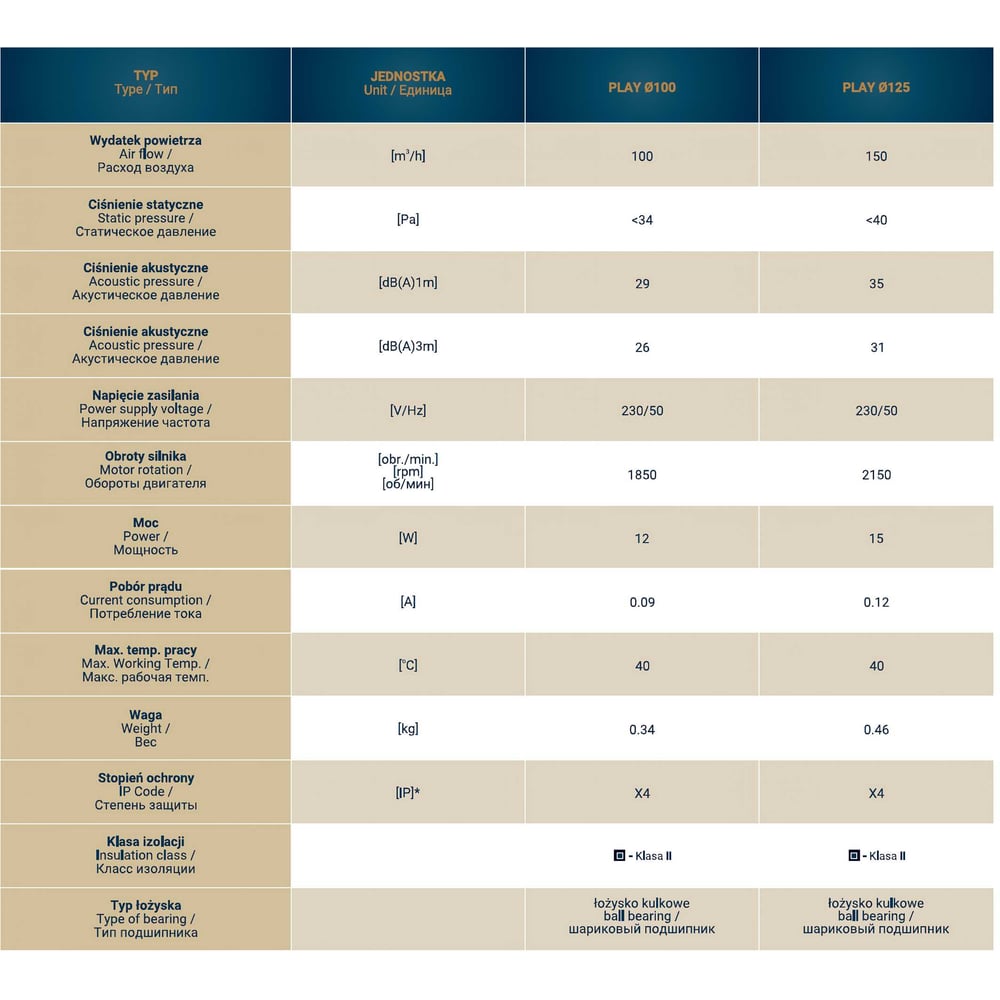 Габариты без упаковки 171х171х88 мм Высота 171 мм Ширина 171 мм Цвет белый, серый Тип установки настенный Вес нетто 0.45 кг Материал корпуса ABS-пластик Серия PLAY Напряжение 220 В Мощность (Вт) 15 Класс защиты IPХ4 Max температура эксплуатации 40 °С Производительность 150 м³/ч Количество скоростей 1 Диаметр воздуховодов 125 мм Уровень шума 35 дБ Наличие датчика влажности нет Наличие таймера нет Москитная сетка нет Обратный клапан нет Вид канала круглый Тип выключателя шнурковый Защита от перегрева да Тип конструкции осевой Брызгозащищенное исполнение есть Съемная панель да Монтажная глубина 63 мм Тип подшипника шариковый Наличие датчика движения нет