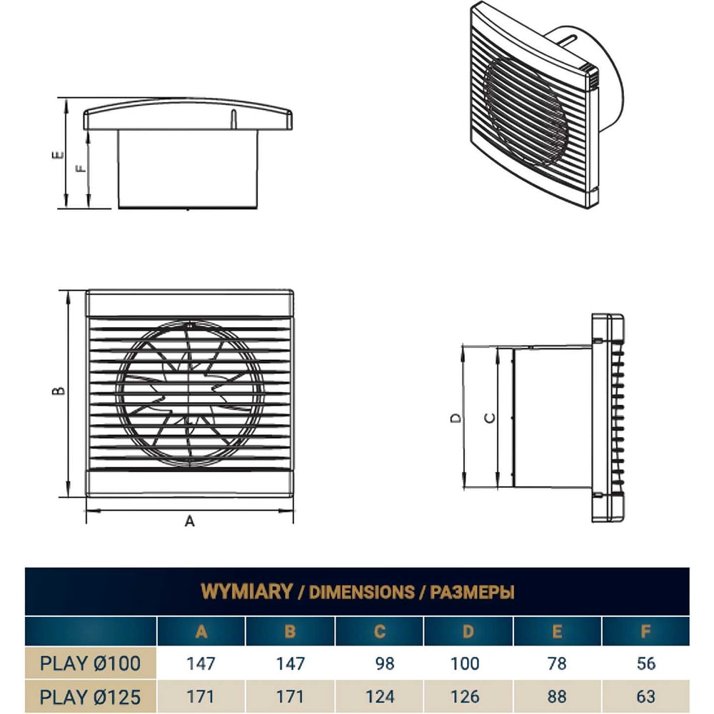 Вентилятор осевой вытяжной DOSPEL PLAY MODERN 125 WP 007-3617