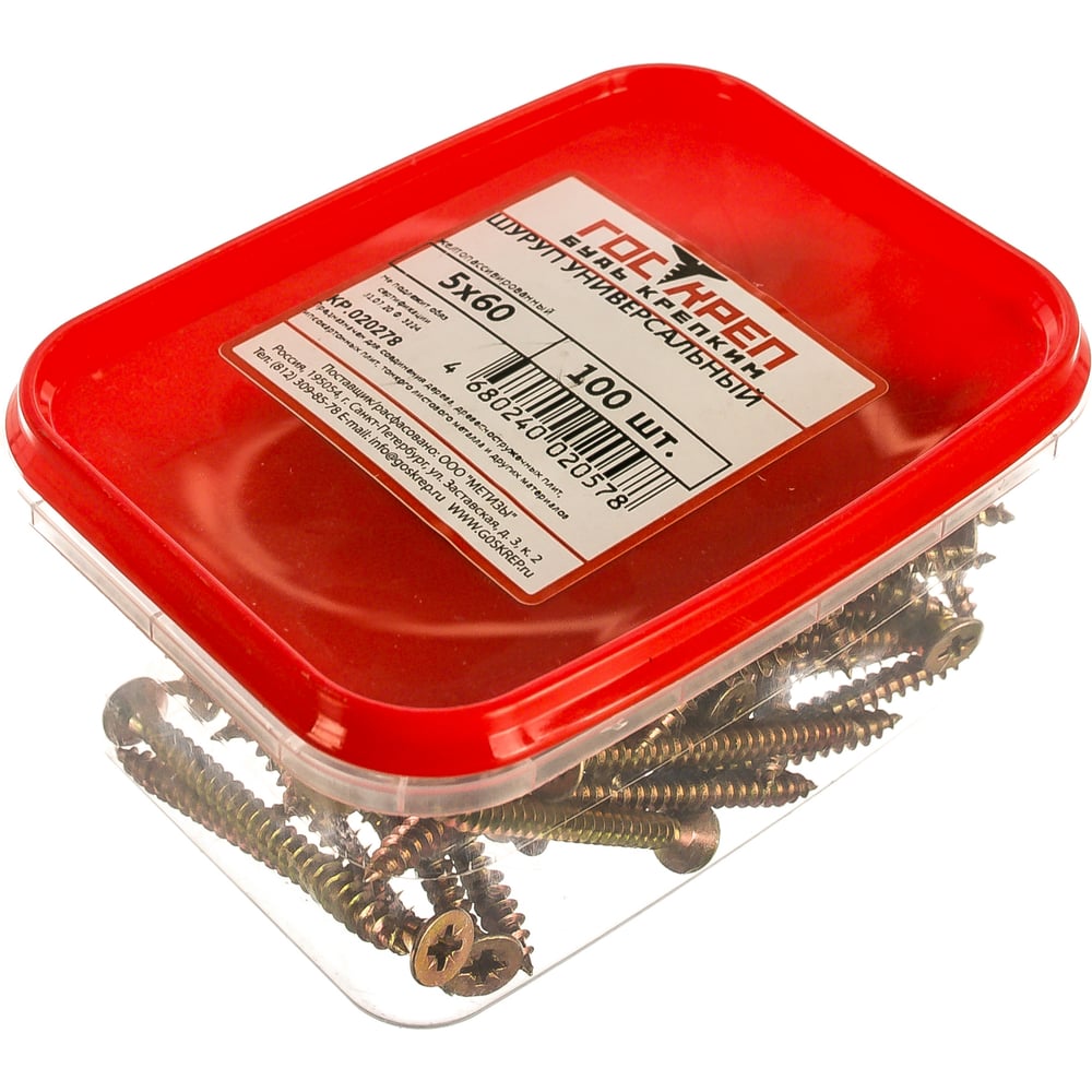 Саморез ГОСКРЕП ШУЖ 5,0х60, 100 шт. пл.конт 400 мл 1-0028180