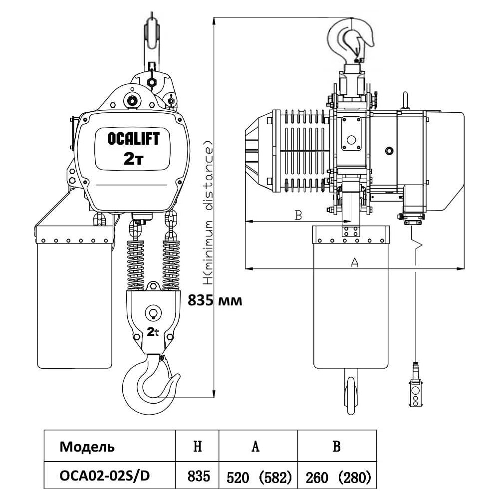 Цепная стационарная таль OCALIFT 02-02s OCA0202SN3m