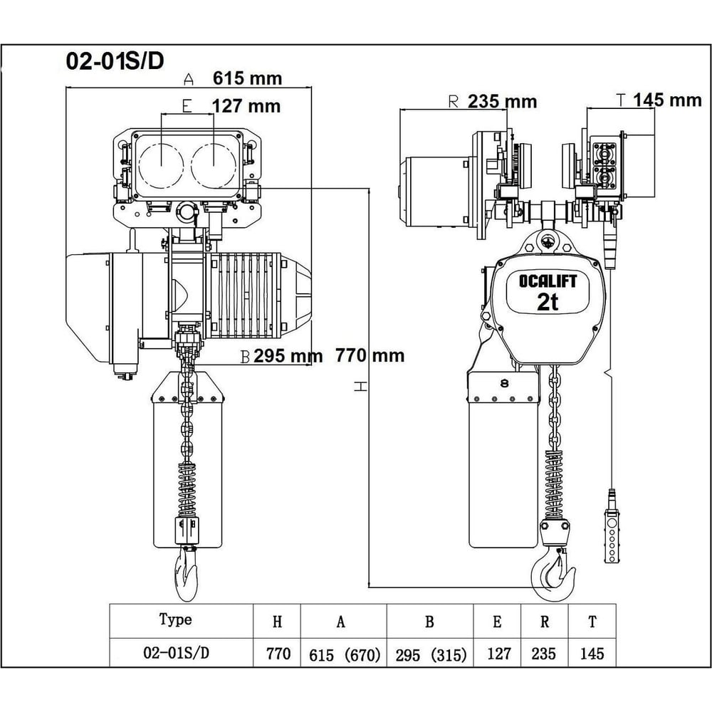 Цепная передвижная электрическая таль OCALIFT 02-01S г/п 2 тонны, высота 6м, 380в OCA0201ST6m