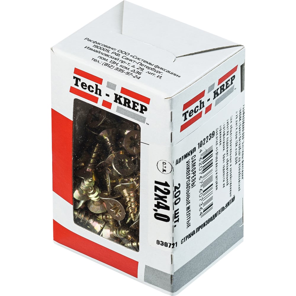 Универсальный саморез Tech-Krep 12х4,0 мм 200 шт желтый, коробка с окном 102239