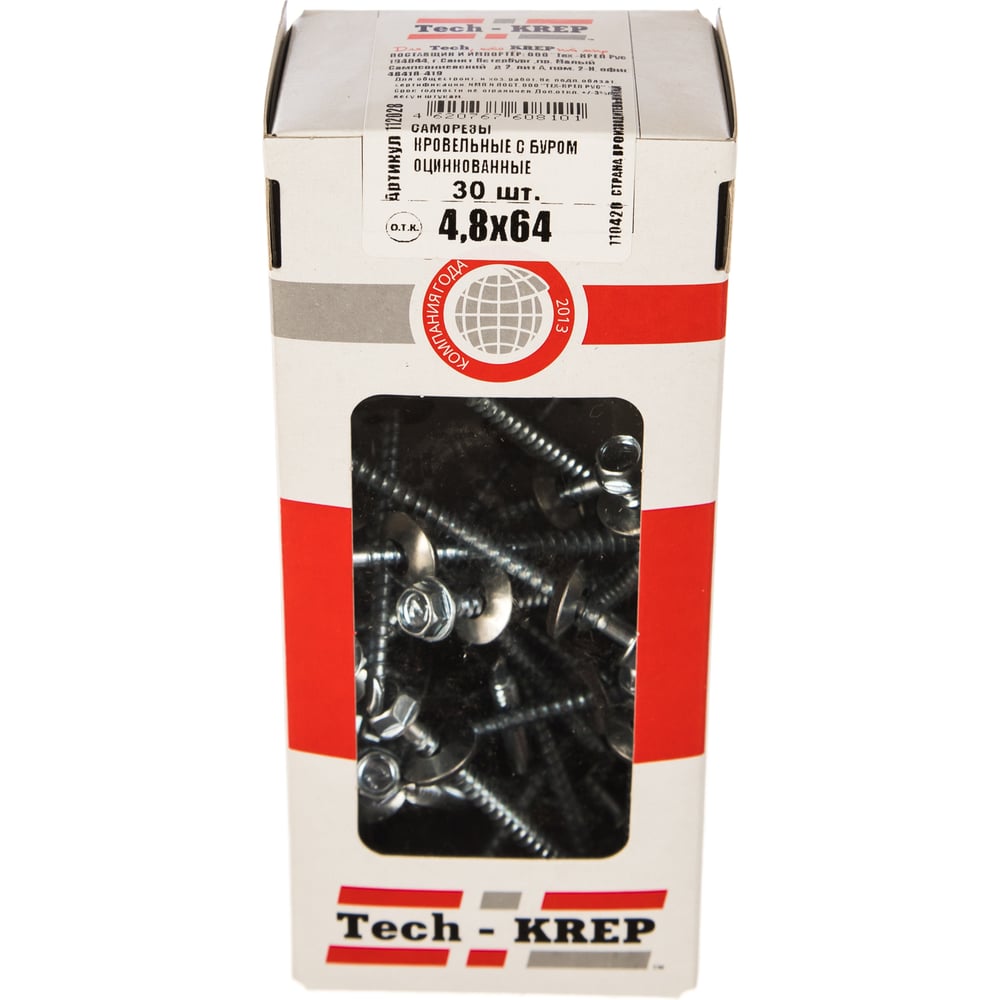 Кровельный саморез Tech-Krep КР ZP сверло 4,8х64 30 шт, коробка с окном 112028