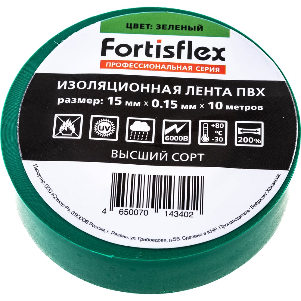Изолента FORTISFLEX ПВХ 15 ммх0.15 ммх10 м зеленая 71225