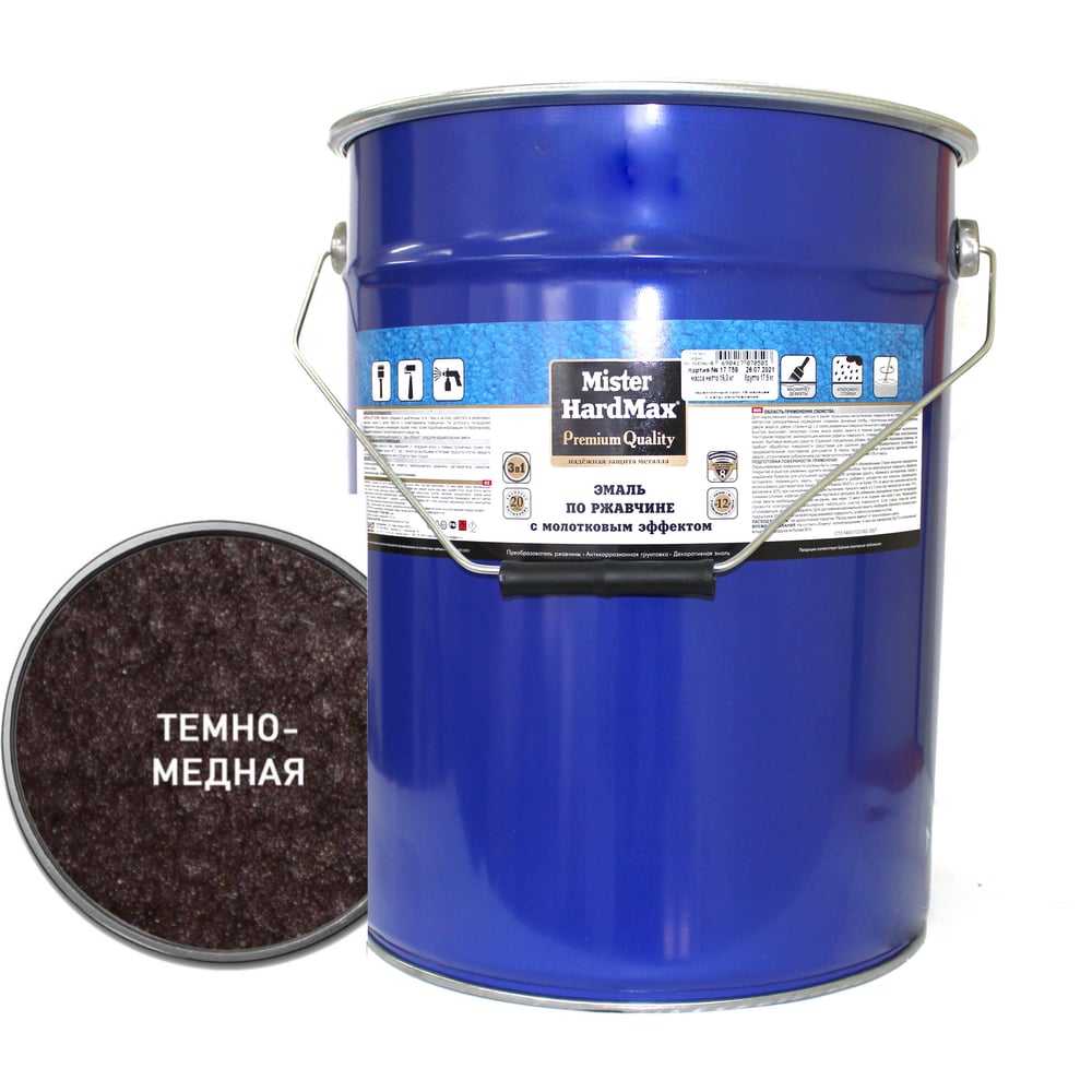 Эмаль по ржавчине с молотковым эффектом HardMax темно-медная, барабан 16 кг 4690417070442