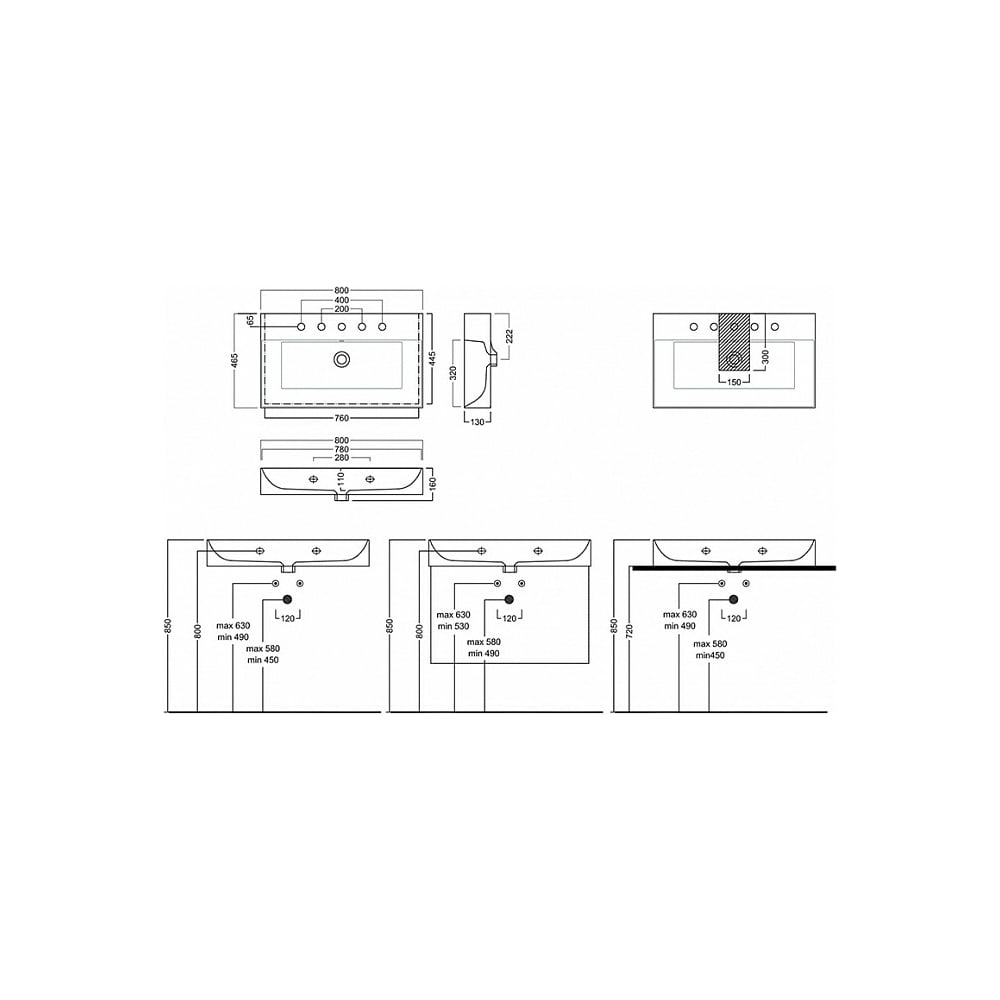 Раковина HATRIA BAHIA 80, 1 отверстие для смесителя по центру BH0800465011TS0