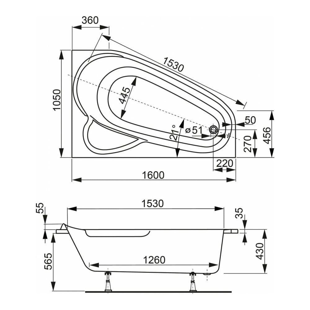 | Диаметр выпуска (отверстия для слива) | 51 мм |