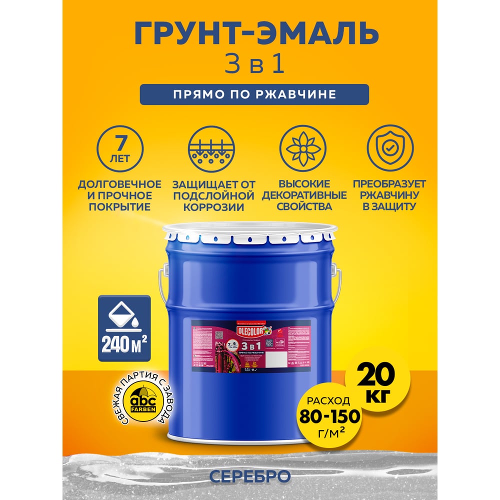 Грунт-эмаль по ржавчине Olecolor 3 в 1 серебро (20 кг) 4300008971