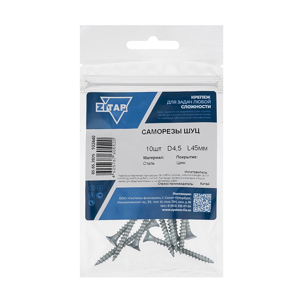 Саморез ШУц 4,5х45 потайная головка 10 шт, пакет Zitar 102440