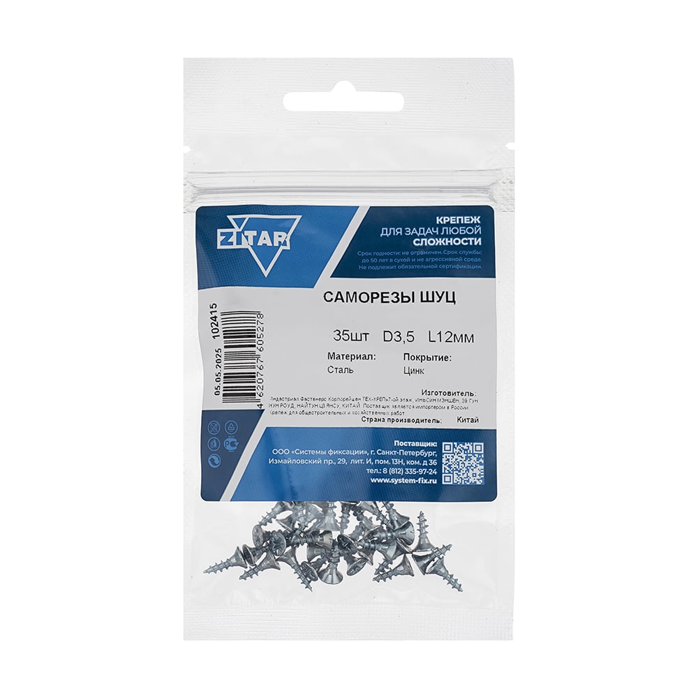 Саморез ШУц с потайной головкой 3,5x12 мм, 35 шт., пакет Zitar 102415