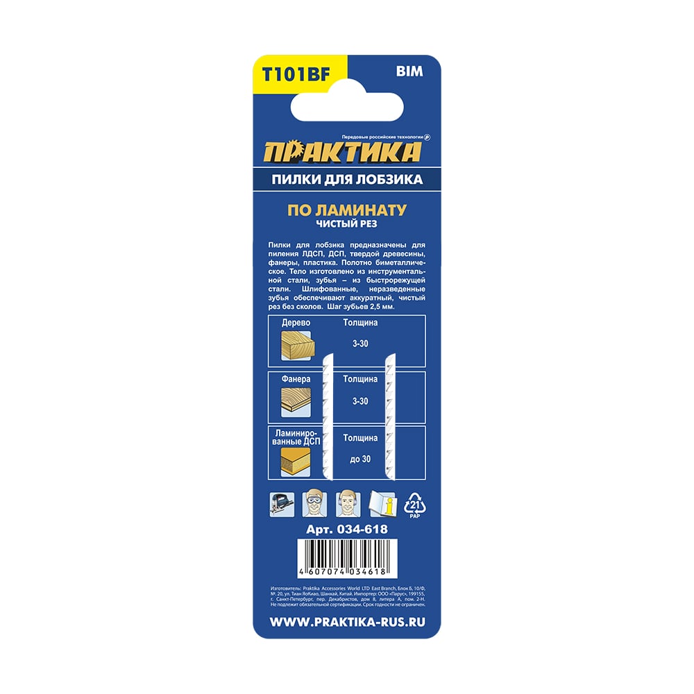Пилка (2 шт; T101BF) для лобзиков ПРАКТИКА 034-618