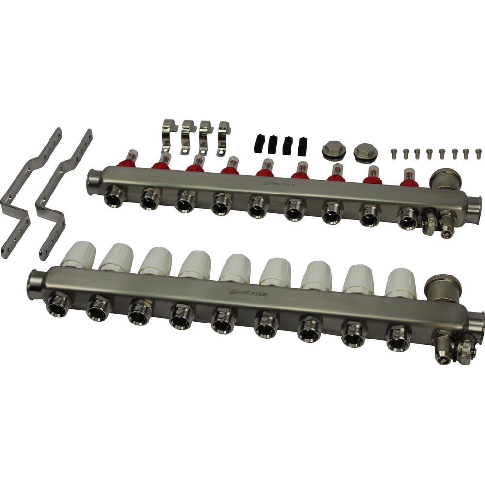 Коллекторная группа с расходомерами из нержавеющей стали One Plus DN25-9P+1 3222000149/ 3504022017