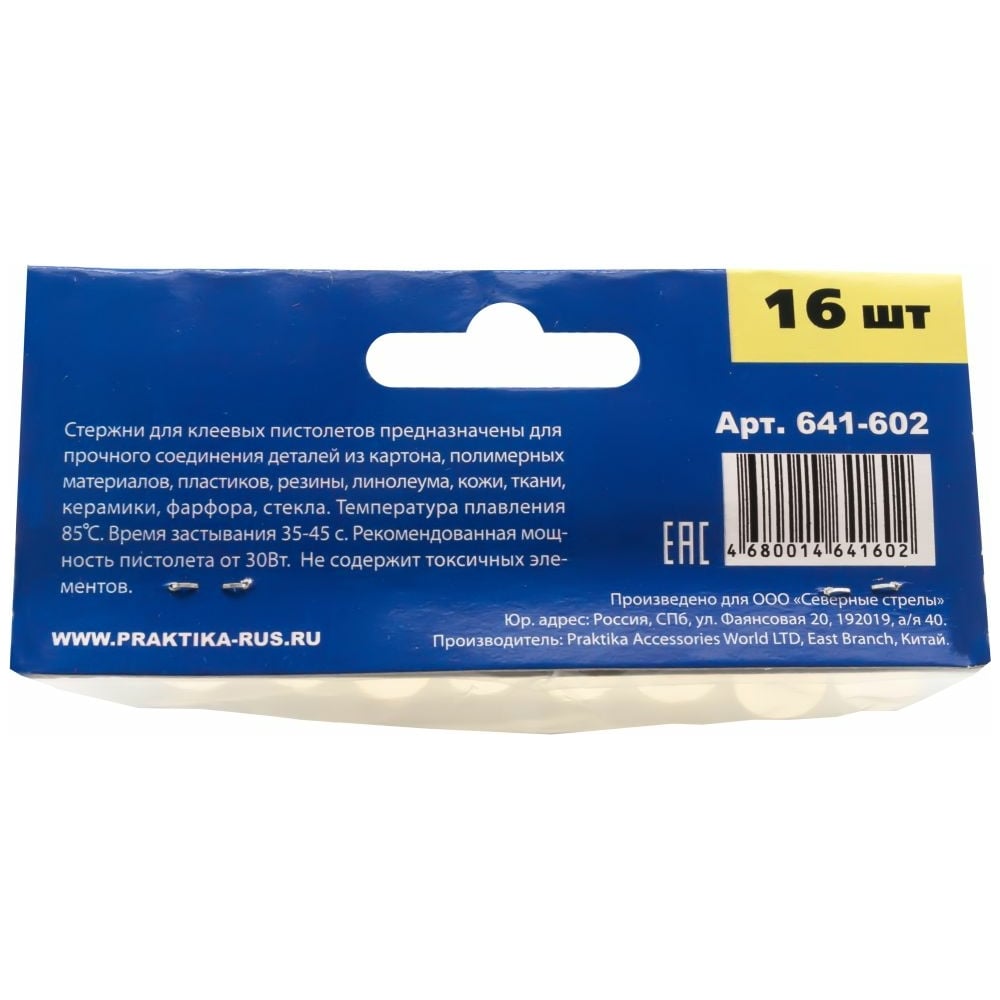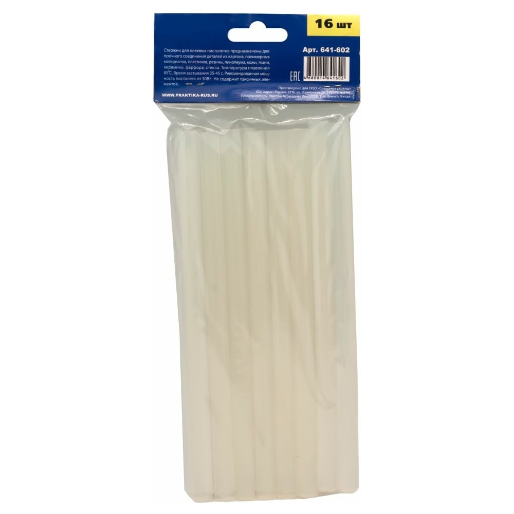 Клей белый, прозрачный (16 шт; 11х200 мм) для клеевого пистолета ПРАКТИКА 641-602
