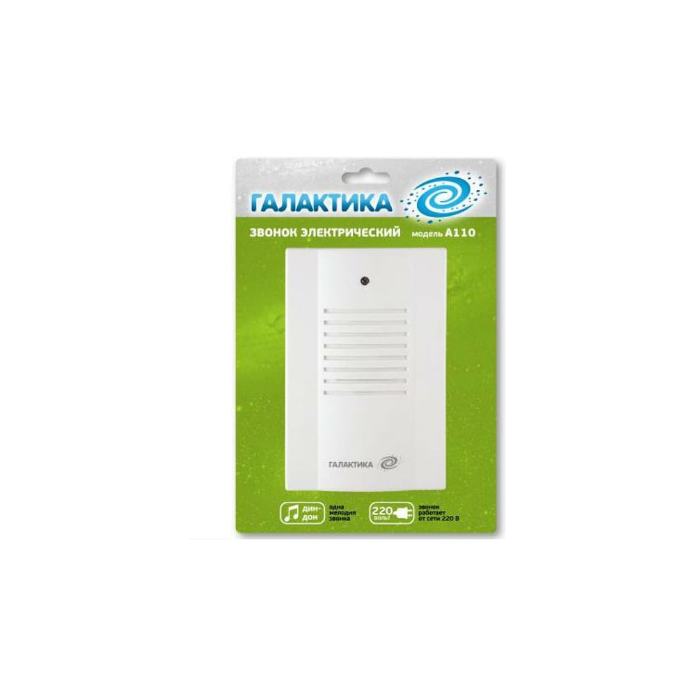 Звонок A-110 ГАЛАКТИКА сетевой, 1 мелодия "дин-дон", проводная кнопка 4606400609339