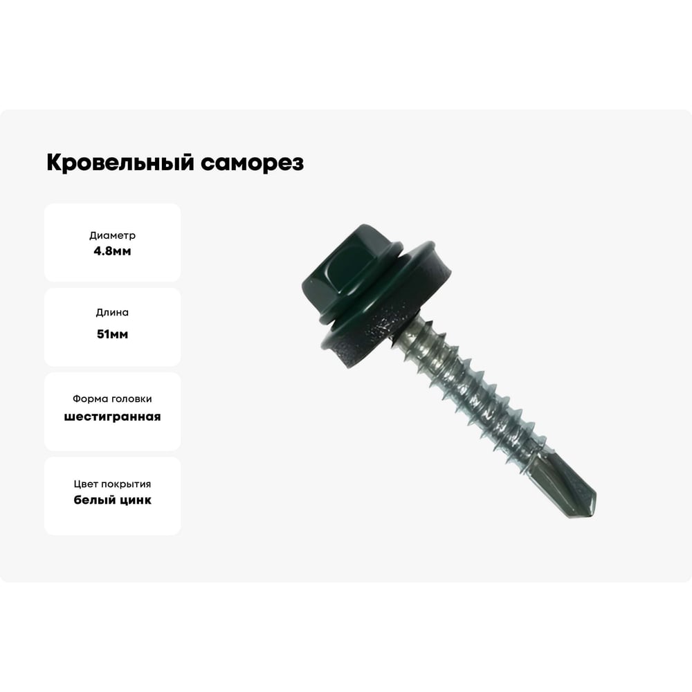 Кровельный саморез Kenner 4,8х51 RAL6005 тёмно-зелёный (2000 шт.) ск516005