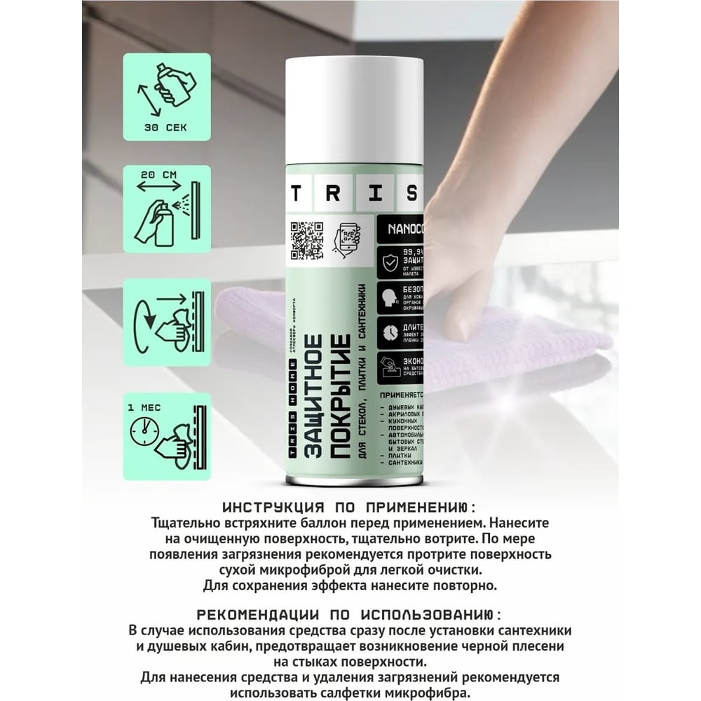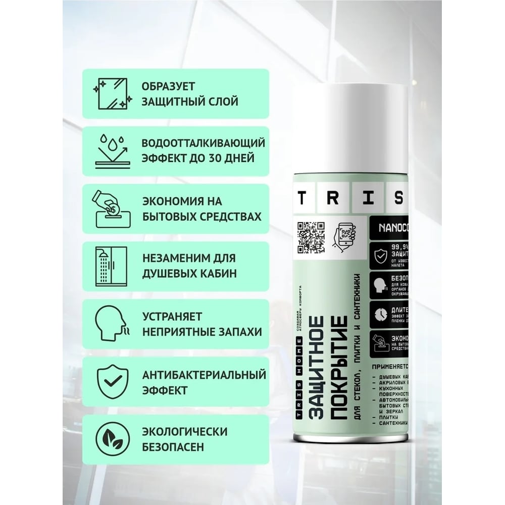 Профессиональное защитное покрытие для стекол, плитки и сантехники TriS аэрозоль, 500 мл КЛ03
