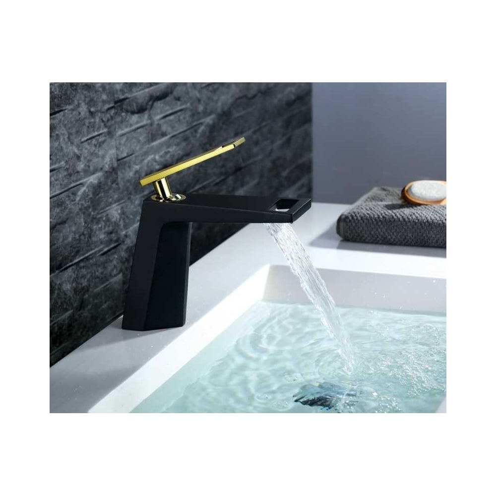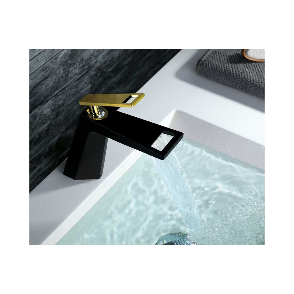 Смеситель на раковину BRONZE DE LUXE QUADRO черный/золото A919B