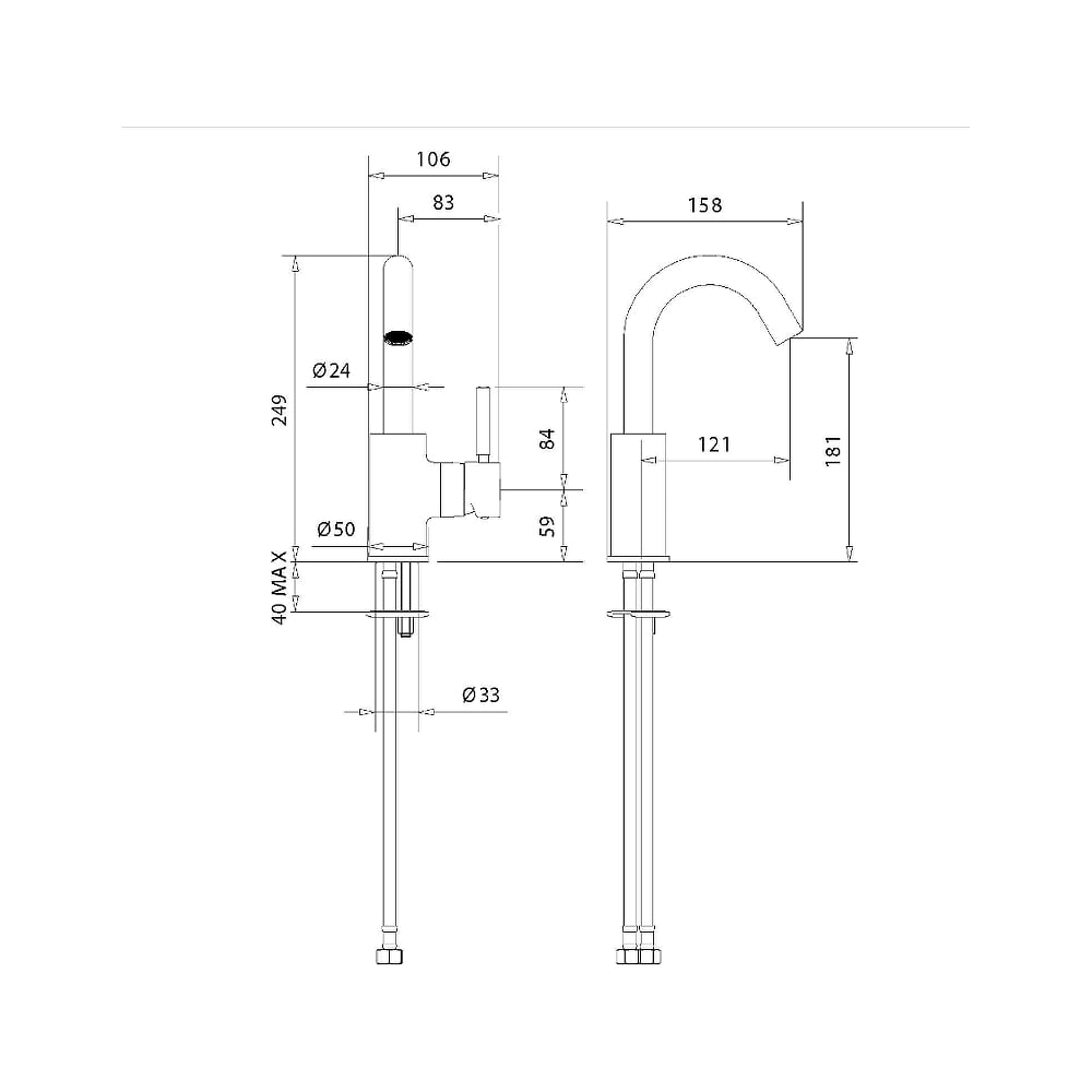 | Диаметр отверстия в раковине | 33 мм |