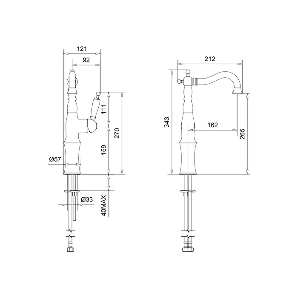 | Диаметр отверстия в раковине | 33 мм |