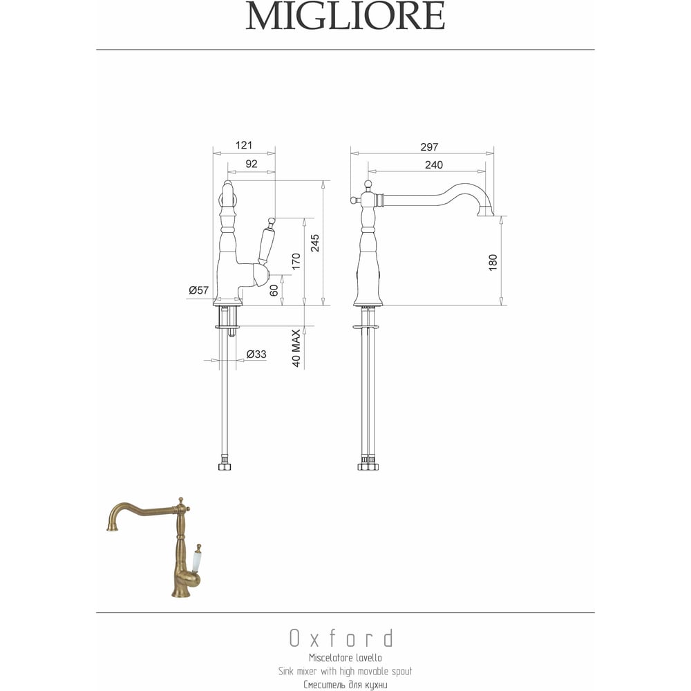 Монокомандный смеситель для кухни Migliore CUCINA OXFORD 18274
