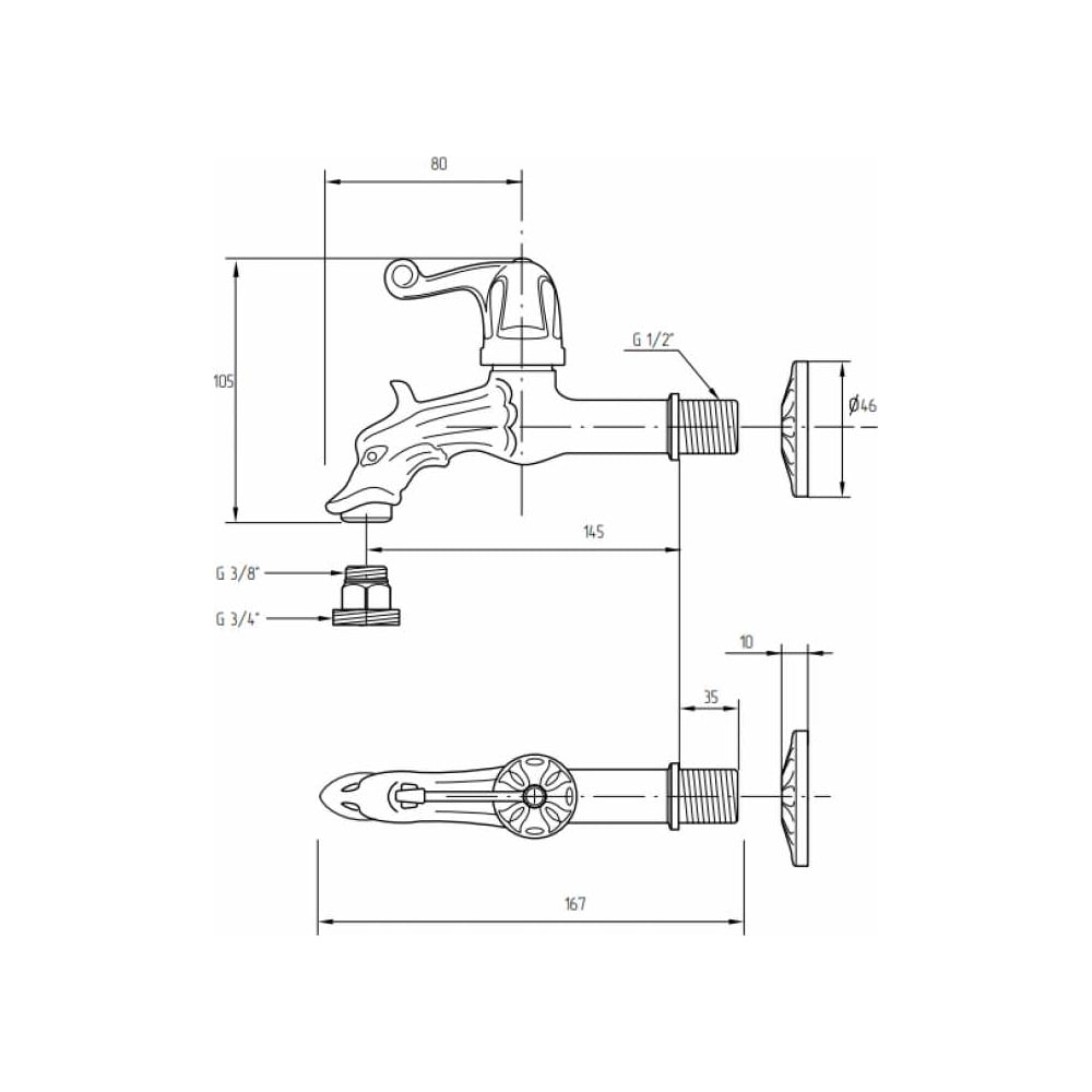 Садовый кран Migliore ARTISTICA "Дракон" декоративный, 16 cm, бронза 18408