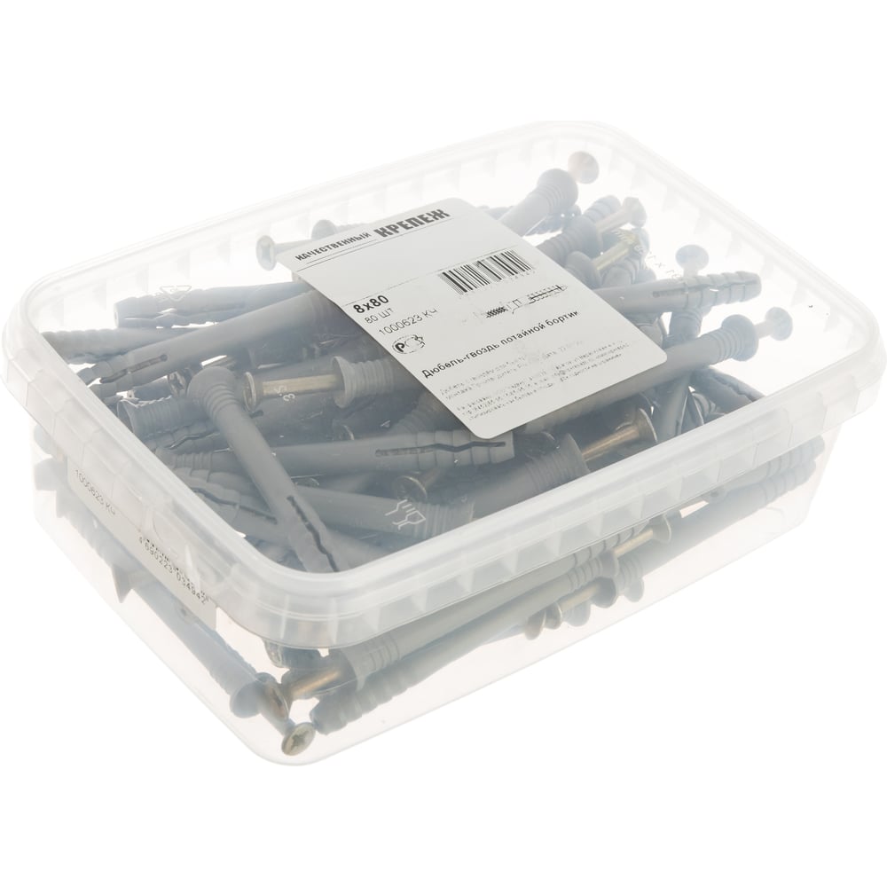 Дюбель-гвоздь Качественный Крепеж потайной бортик 8х80 80 шт 1000623 КЧ