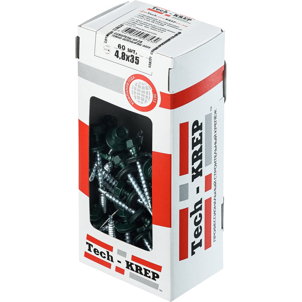 Кровельный саморез Tech-Krep КР сверло 4,8х35 RAL-6005 тёмно-зеленый 60 шт, коробка с окном 124634
