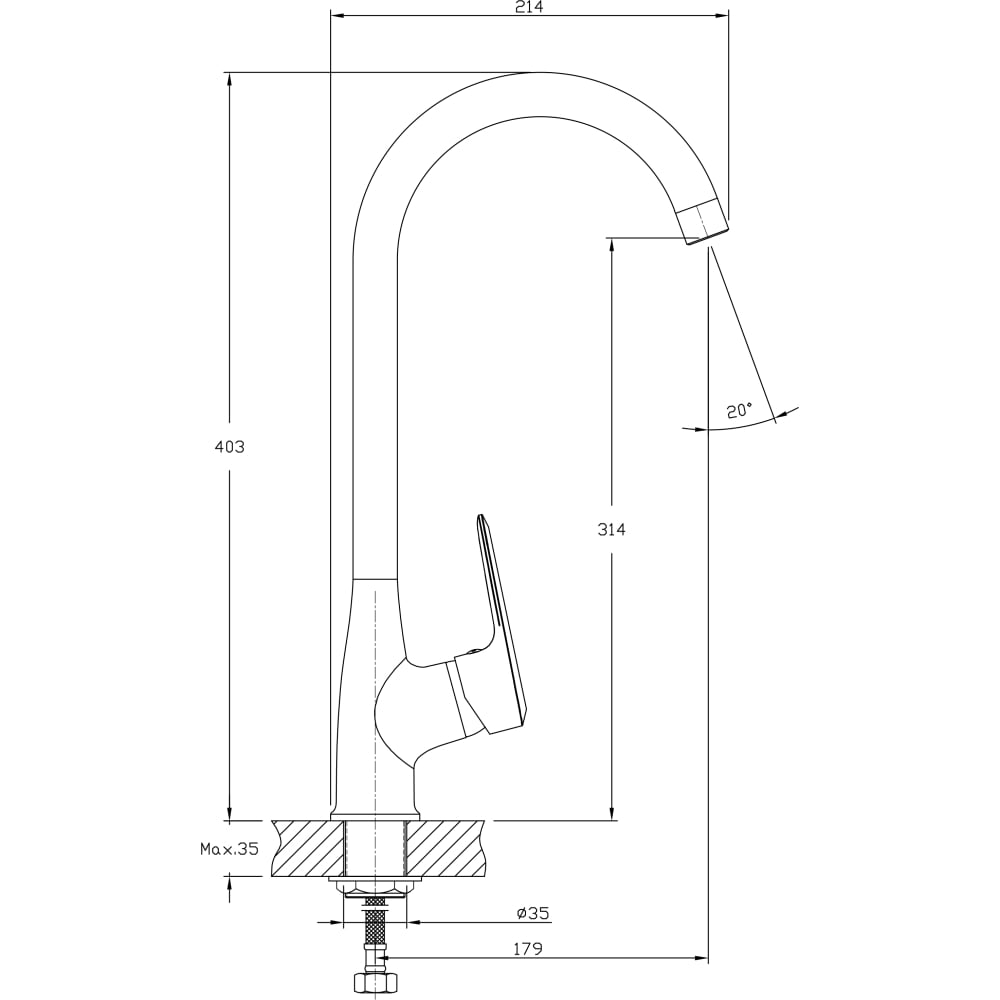 Смеситель для кухни RUSH Devon с высоким поворотным изливом, хром DE7535-22