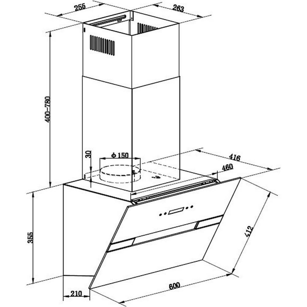 | Мин высота над электрической плитой | 650 мм |