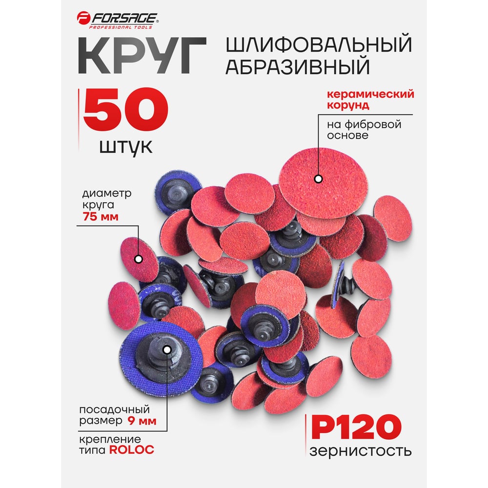 Круг абразивный шлифовальный (50 шт; 75 мм; 120; красный) Forsage 48991 F-BD3120C