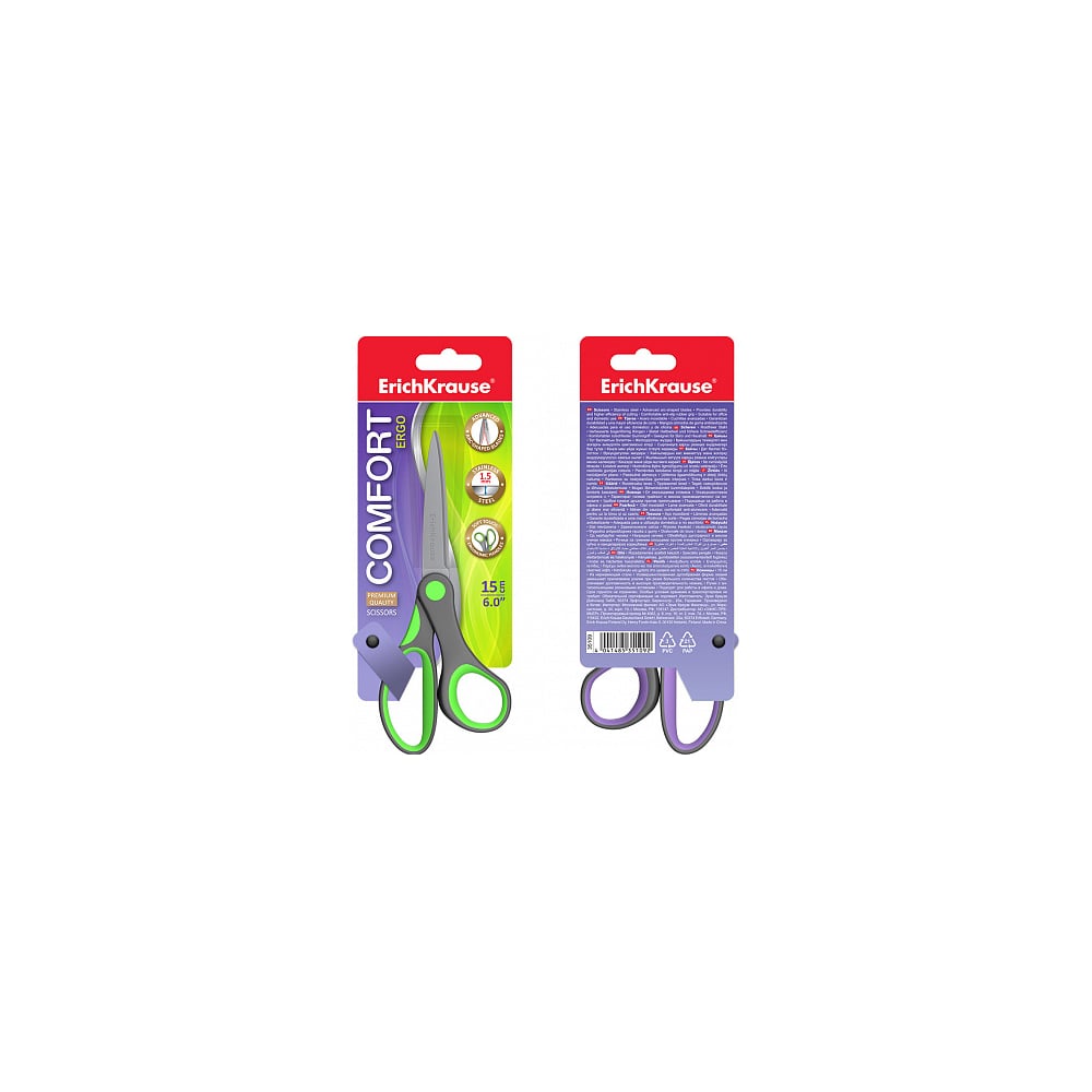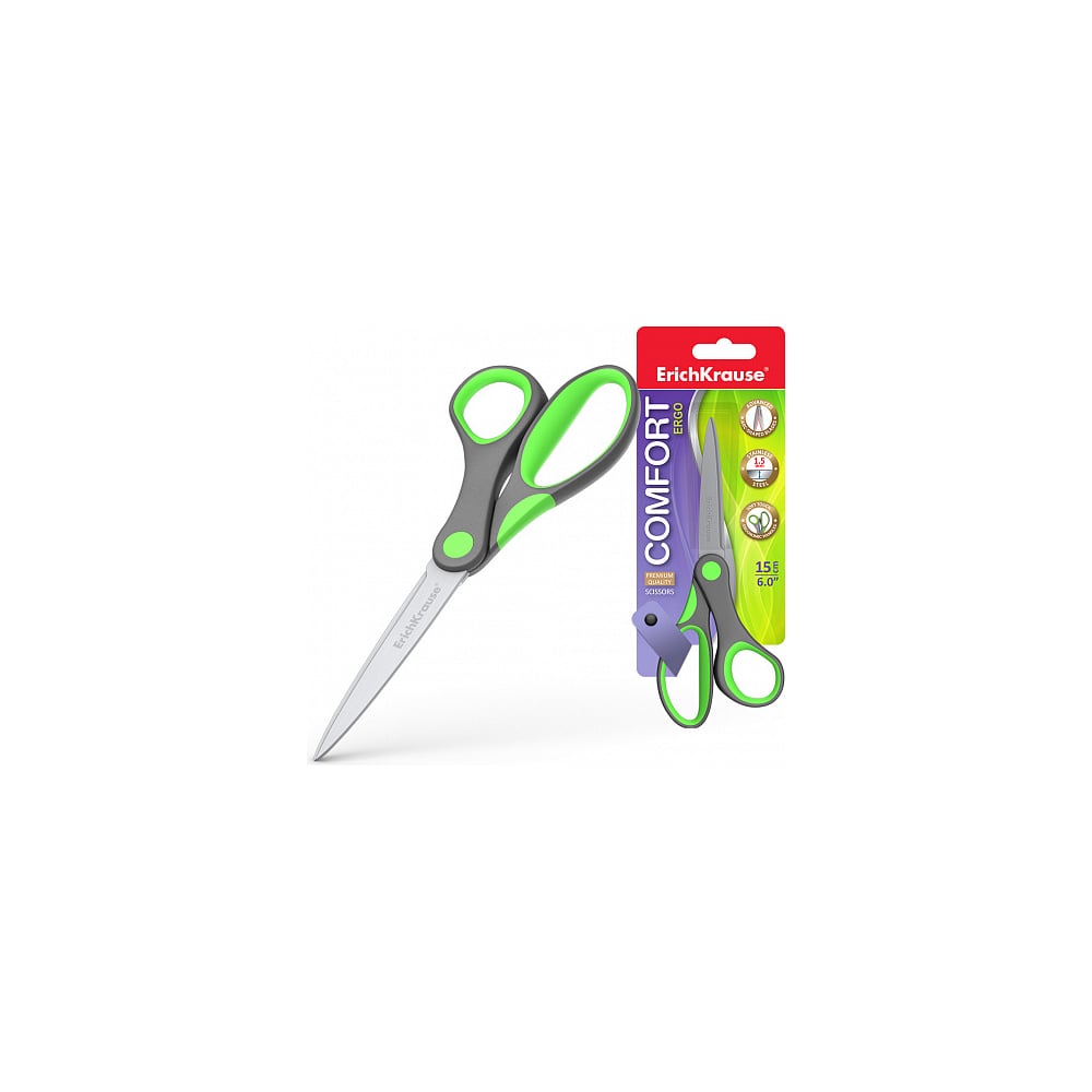 Ножницы ErichKrause Комфорт, 15 см, ассорти 35109