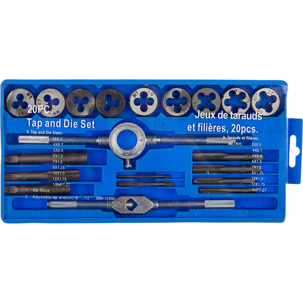 Метчики (М3х0,5; М4х0,7; М5х0,8; М6х1,0; М7х1,0; М8х1,25; М10х1,5; М12х1,75; 1/8NPT) - 9 шт;