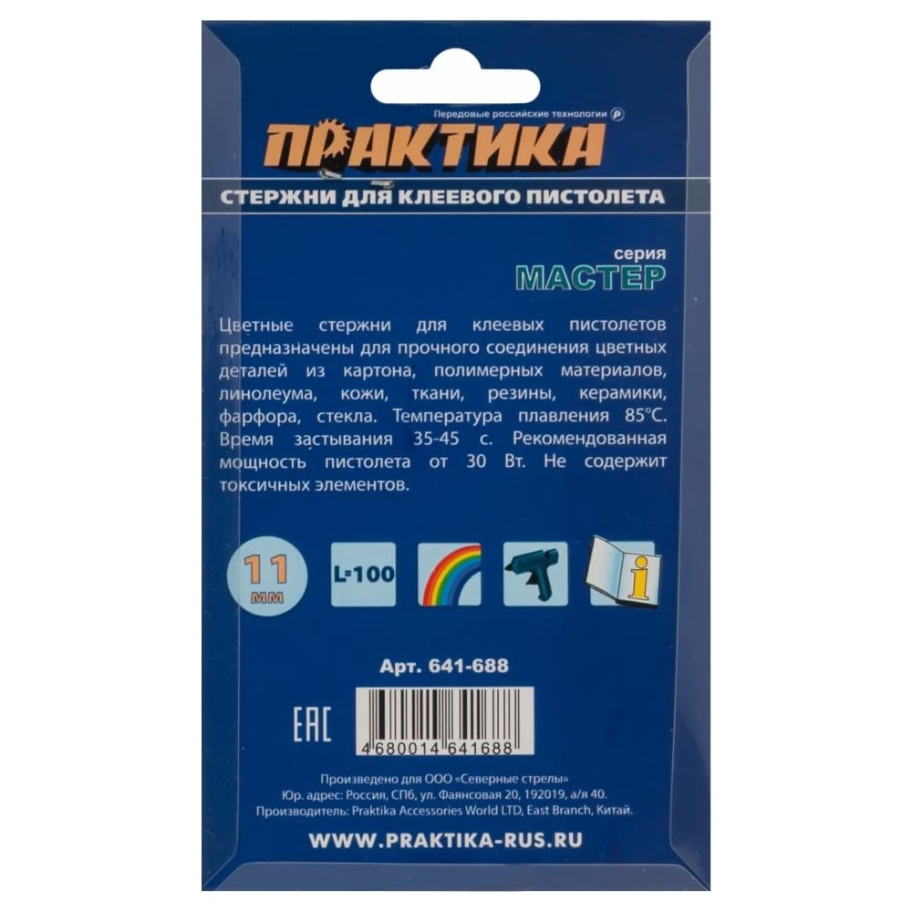 Клей для клеевого пистолета цветной (6 шт; 11х100 мм; 3 цвета) ПРАКТИКА 641-688