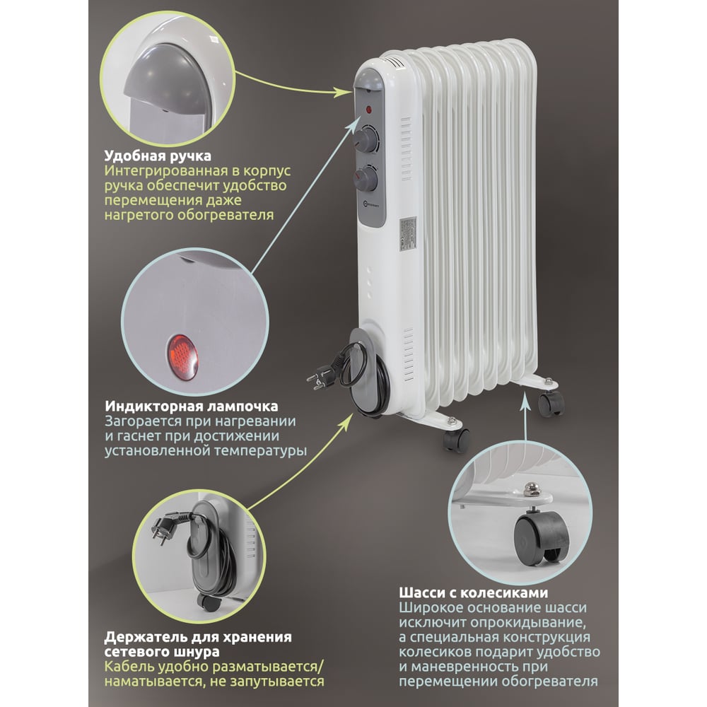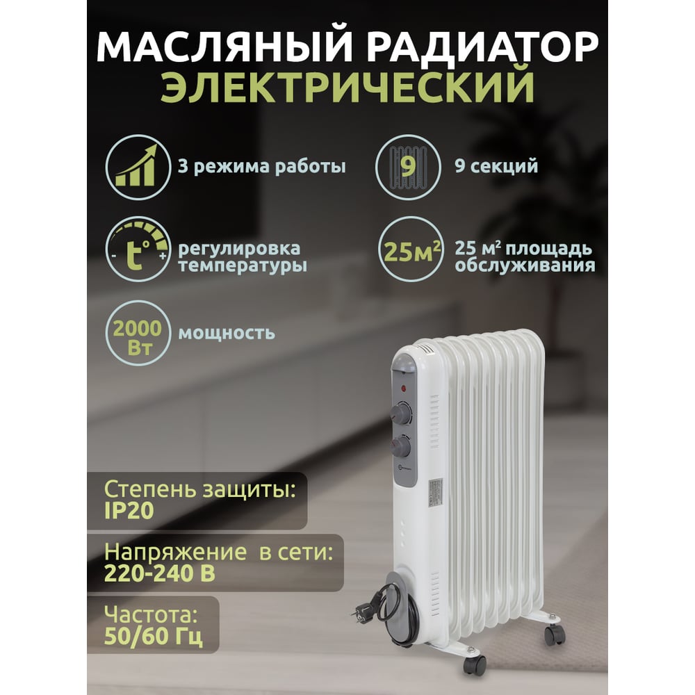 Масляный электрический радиатор Forcekraft 220-240v, 50/60гц, 2000вт, 9 секций 11x58см, 3 режима нагрева,защ. от перегрева FK-YL-B14E-9(52334)