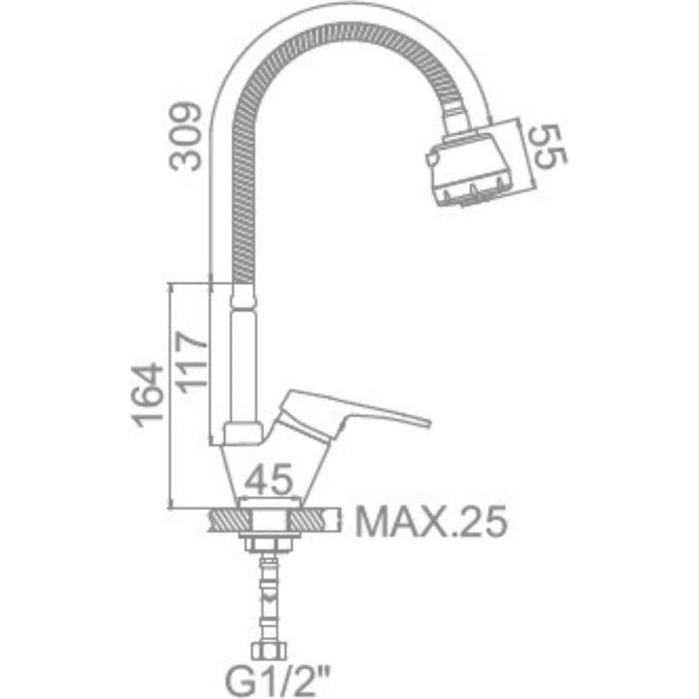 Смеситель для кухни D-Lin с гибким изливом, хром D150409-T