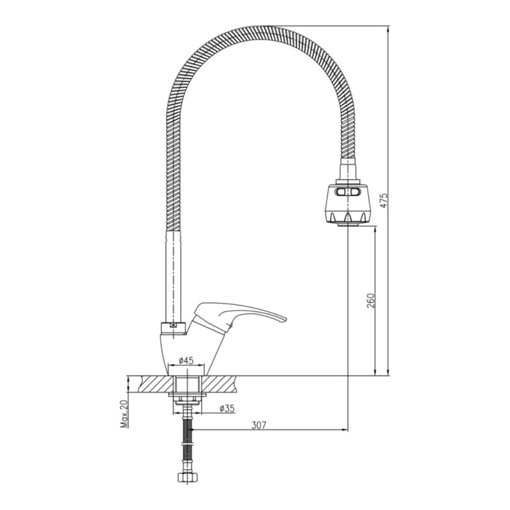 Смеситель для кухни D-Lin с гибким изливом, хром D150359-T