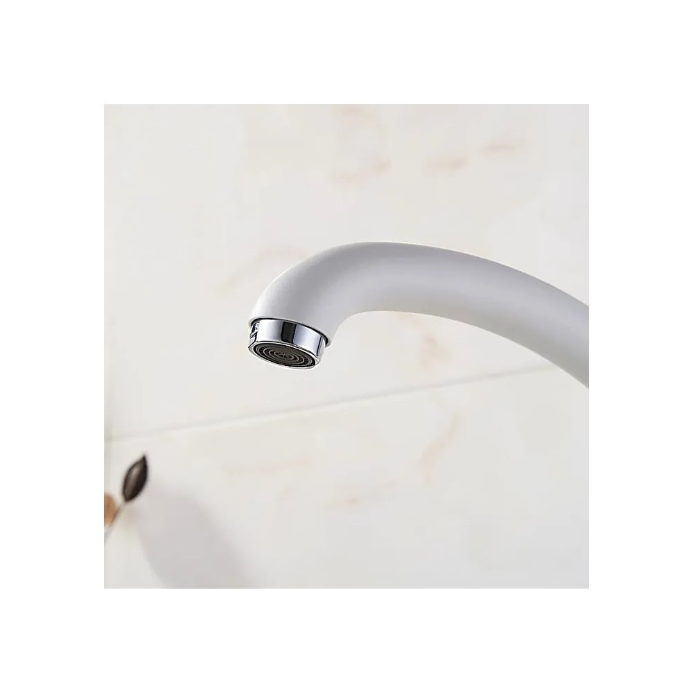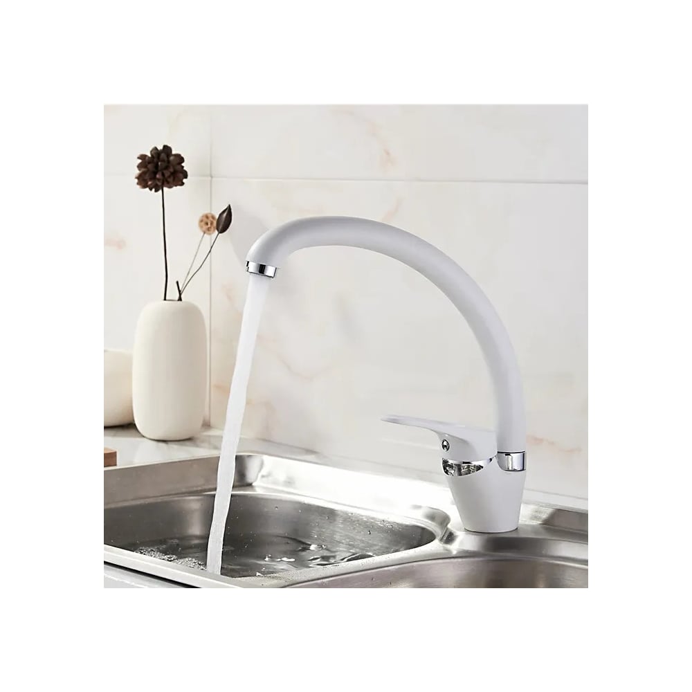 Смеситель для кухни D-Lin с поворотным изливом, белый матовый D150411-C