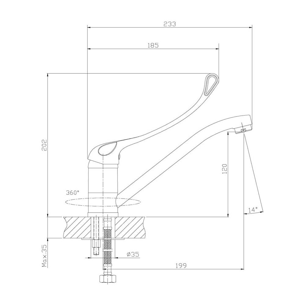 | Диаметр отверстия в раковине | 35 мм |