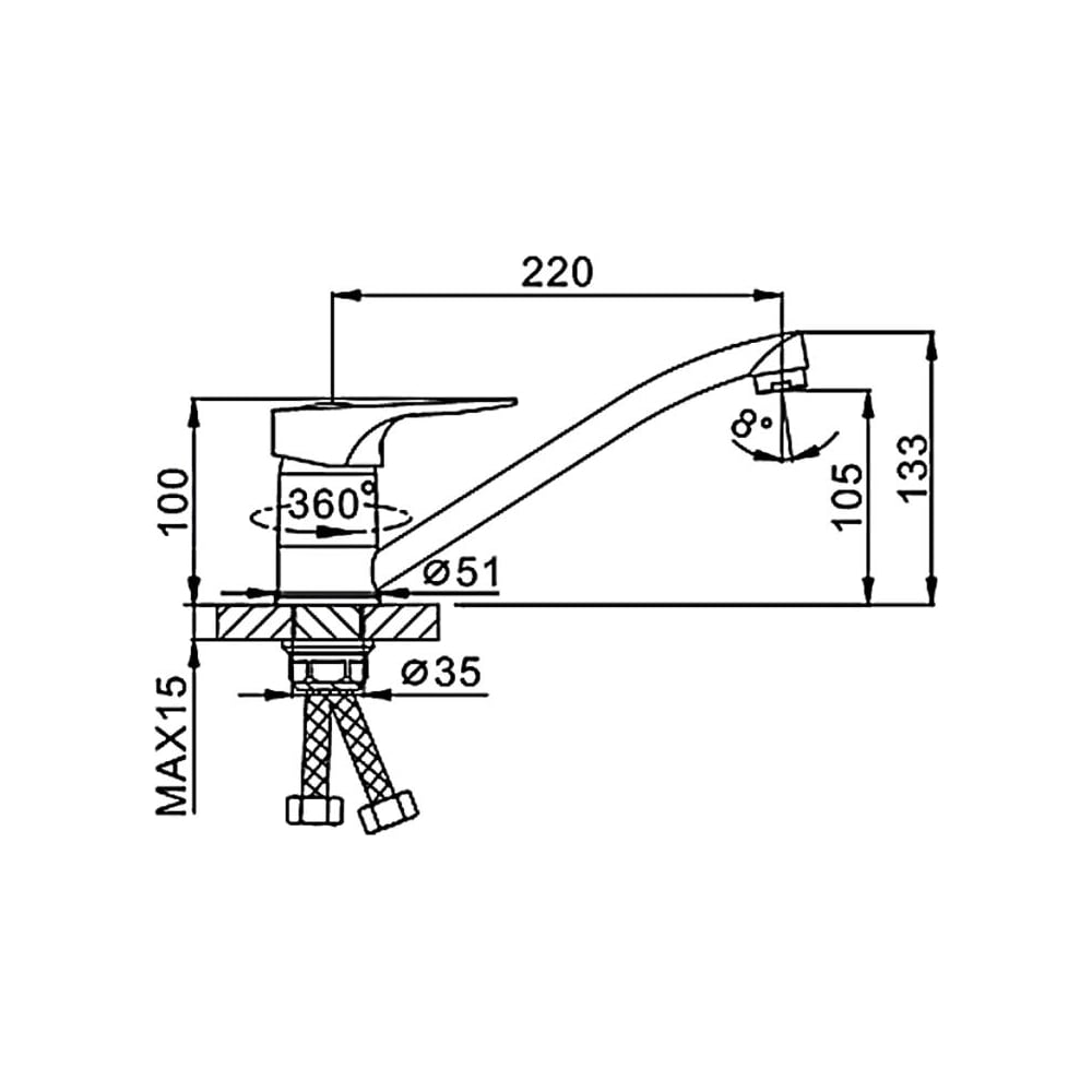 | Высота смесителя | 133 мм |