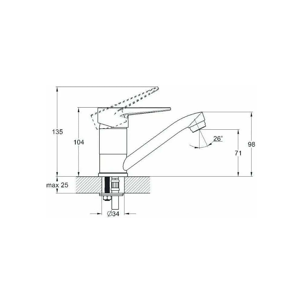 | Диаметр отверстия в раковине | 34 мм |