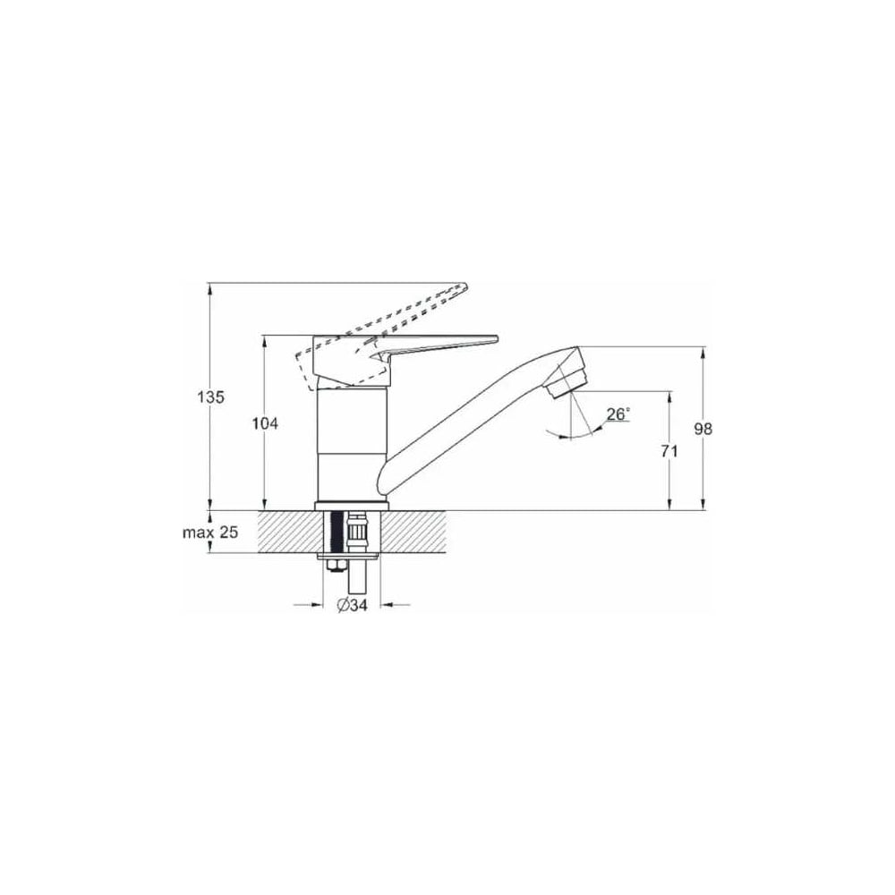 | Диаметр отверстия в раковине | 34 мм |