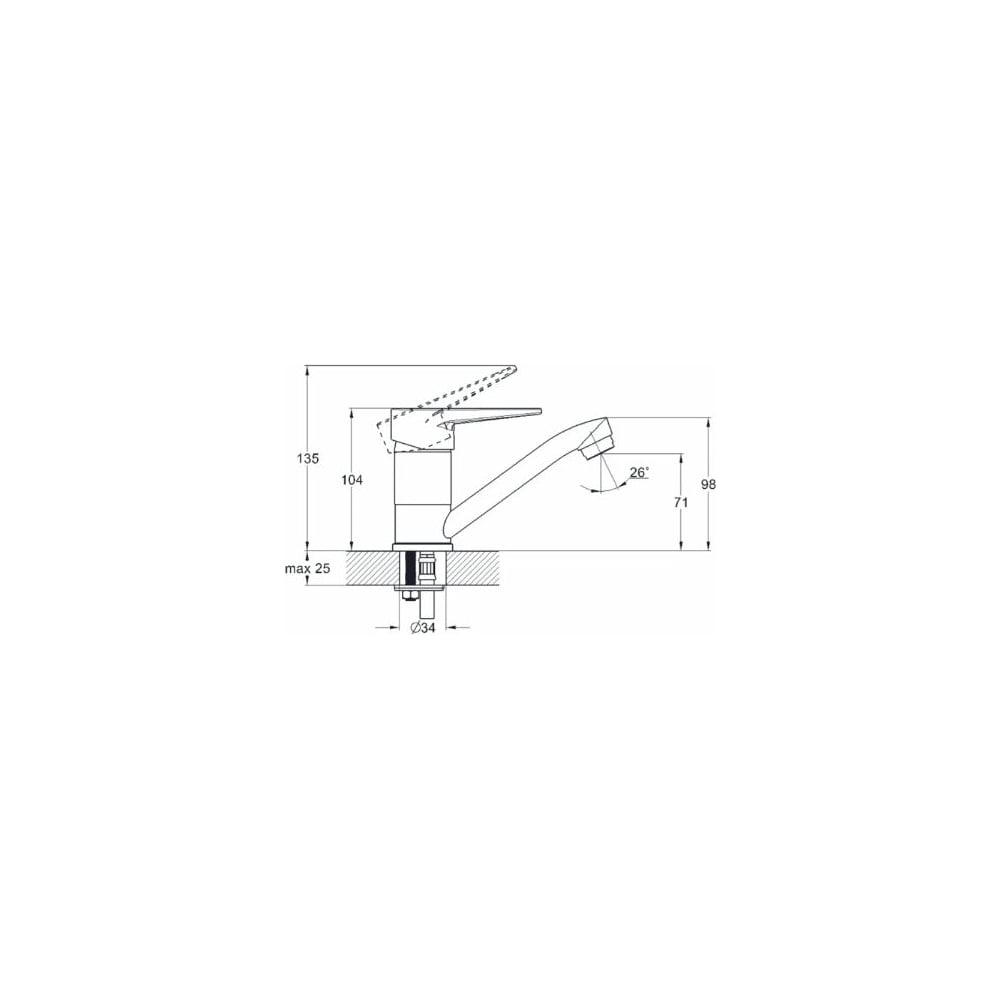 | Диаметр отверстия в раковине | 34 мм |