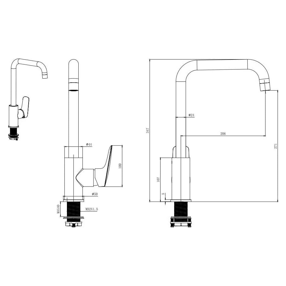 | Высота излива | 271 мм |