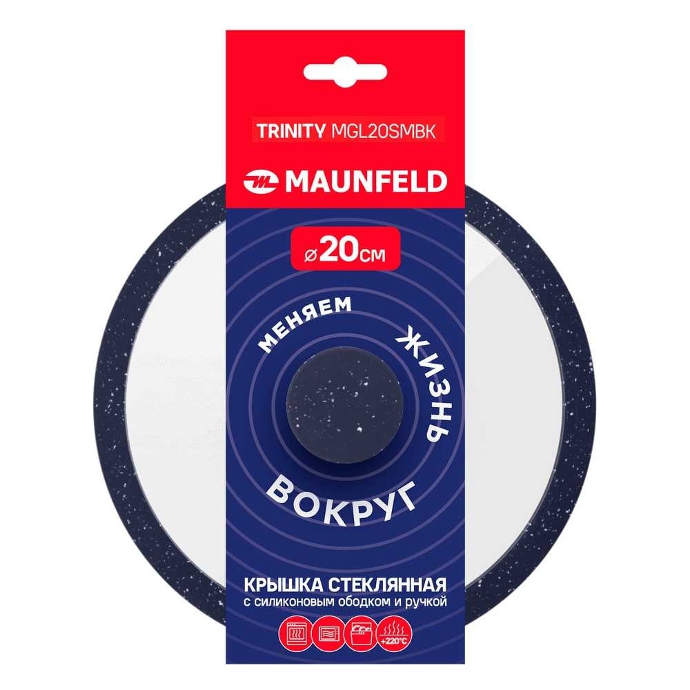 MAUNFELD Крышка стеклянная trinity с силиконовым ободком и ручкой, 20 см MGL20SMBK