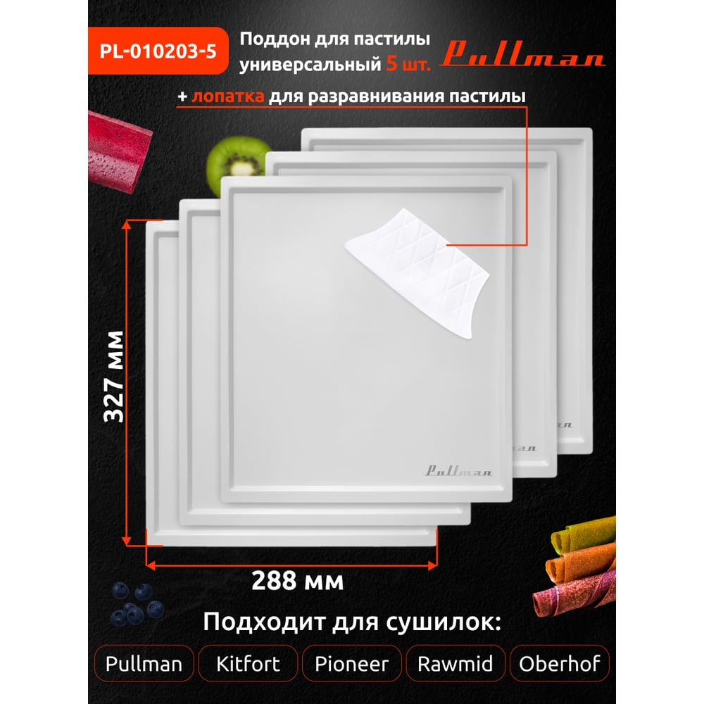 Поддон для пастилы Pullman белый, 5 шт. + лопатка универсальная, прямоугольный размер 327x288x6,6 мм PL-010203-5
