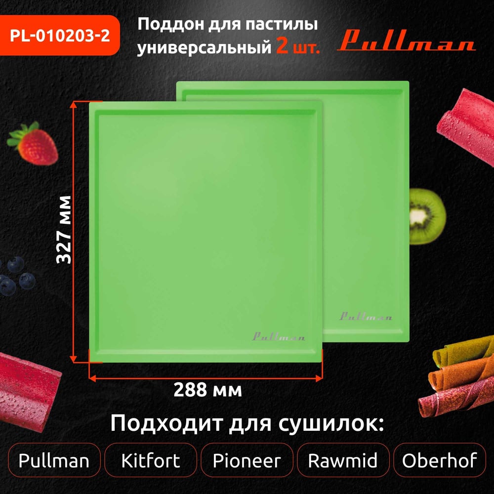 Поддон для пастилы Pullman 2 шт., универсальный, прямоугольный, 327x288x6,6 мм PL-010203-2 зеленый