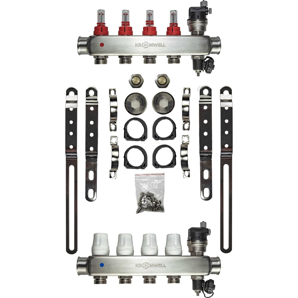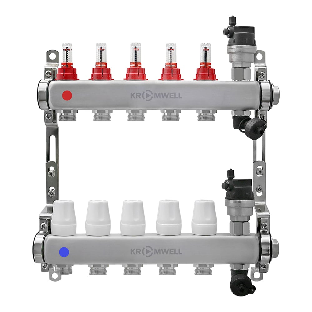Коллекторный блок KROMWELL из нерж. cтали с расходомерами, в комплекте 1", 5x3/4", "евроконус" KW.SM6000655