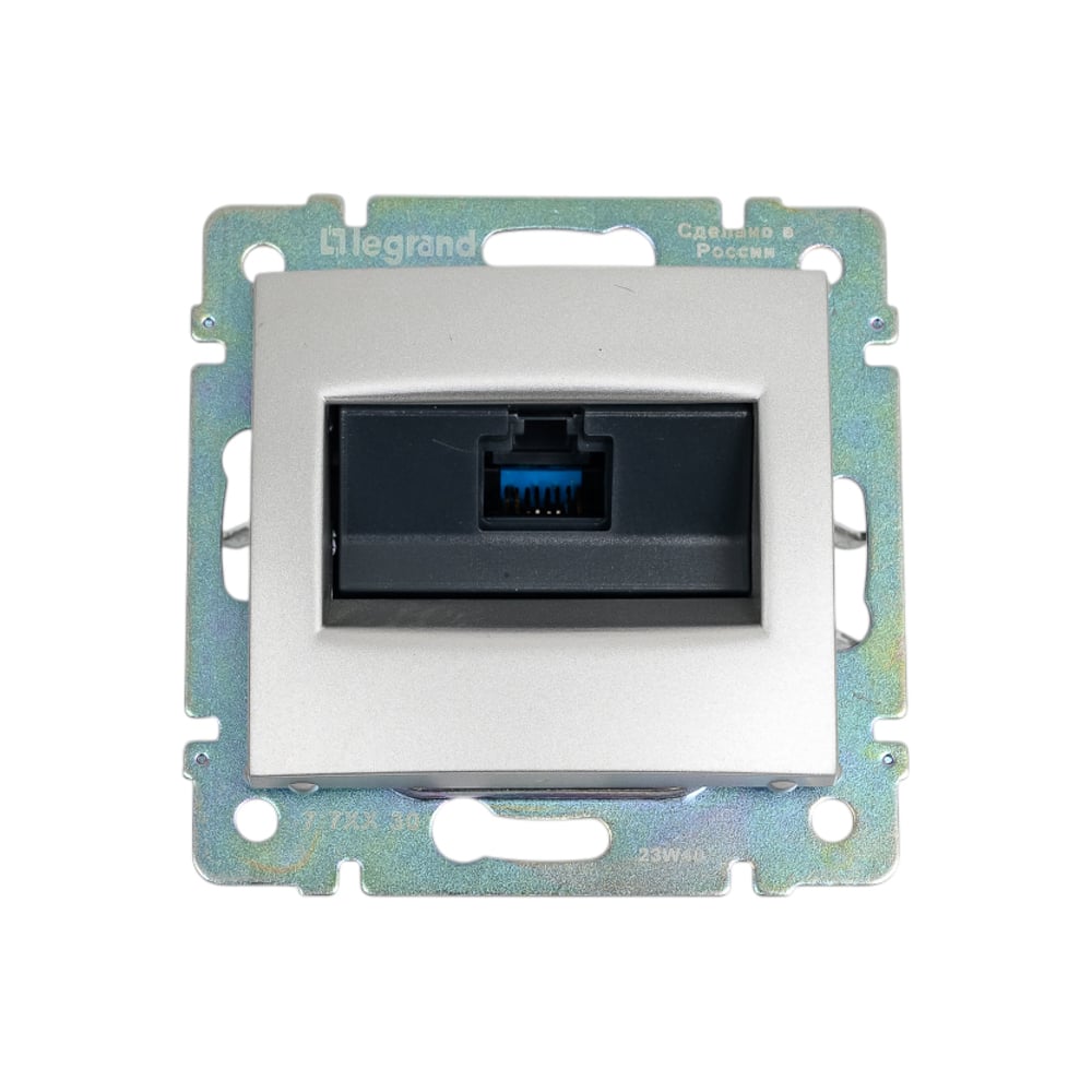 Розетка Legrand компьютерная RJ45 категория 5e UTP Legrand Valena с захватами алюминий 770230