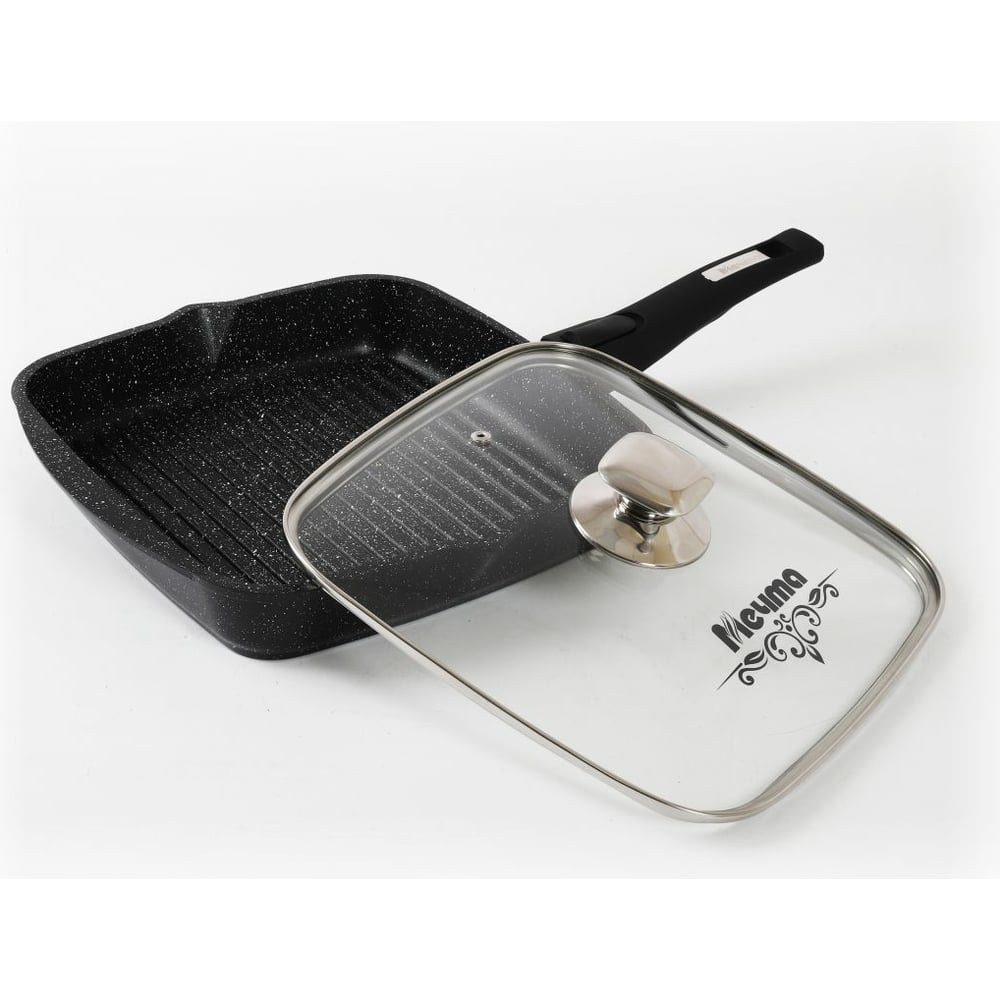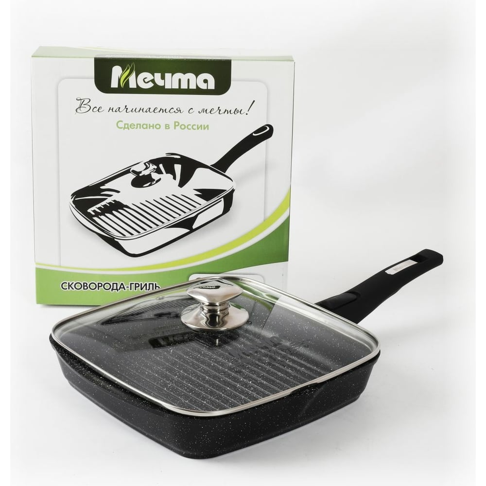 Квадратная сковорода-гриль Мечта АП Гранит black 26х26 см, со съемной ручкой и стеклянной крышкой с066802